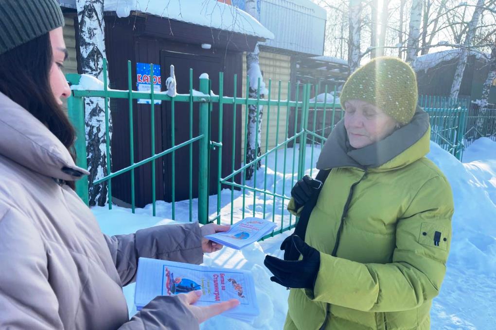 В ходе мероприятия прохожим раздавали листовки с информацией о историко-мемориальных комплексах, посвященных Памяти Победы в Сталинградской битве.
