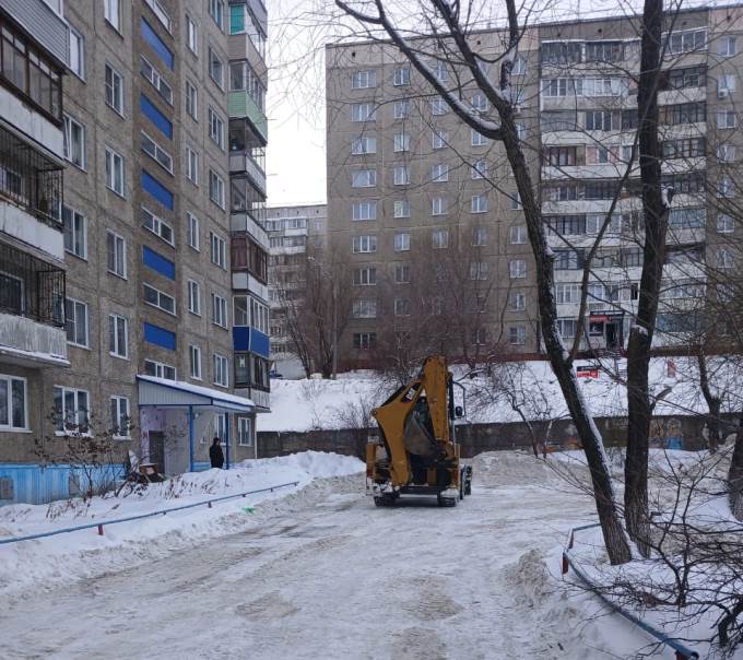 Подрядной организацией проводится очистка внутриквартальных проездов и подходов к социально значимым объектам.