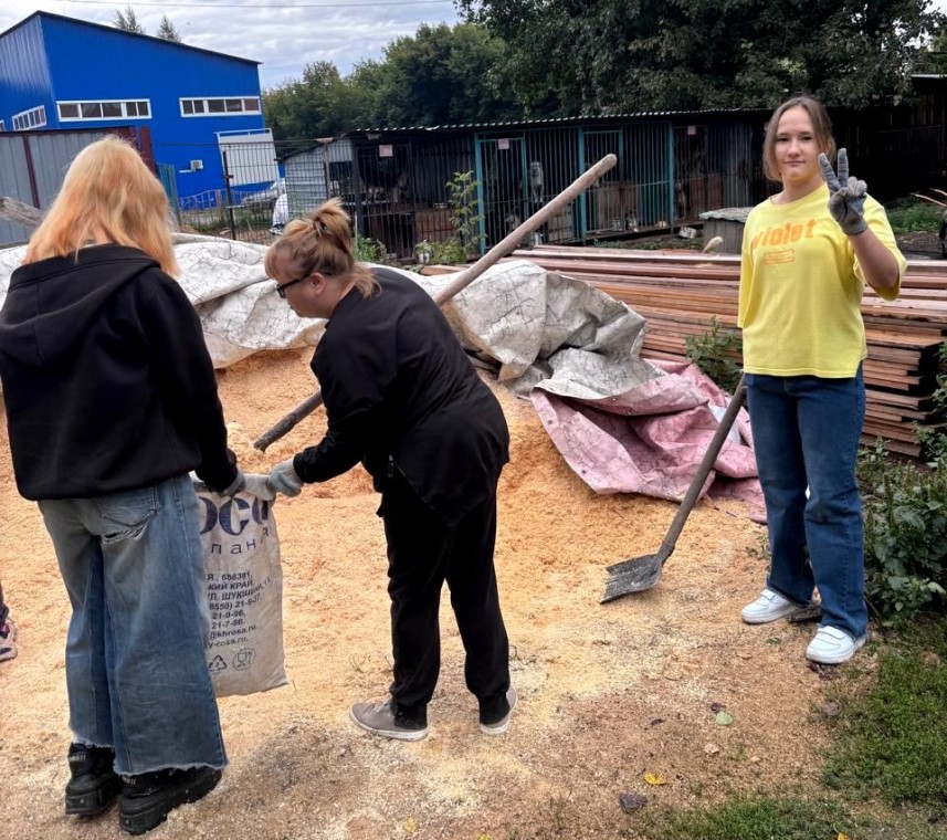В ходе визита волонтеры помогли наполнить около 30 мешков опилками, выгуляли очаровательных щенков, а затем отдохнули в «котокомнате» в окружении прекрасных представителей семейства кошачьих.