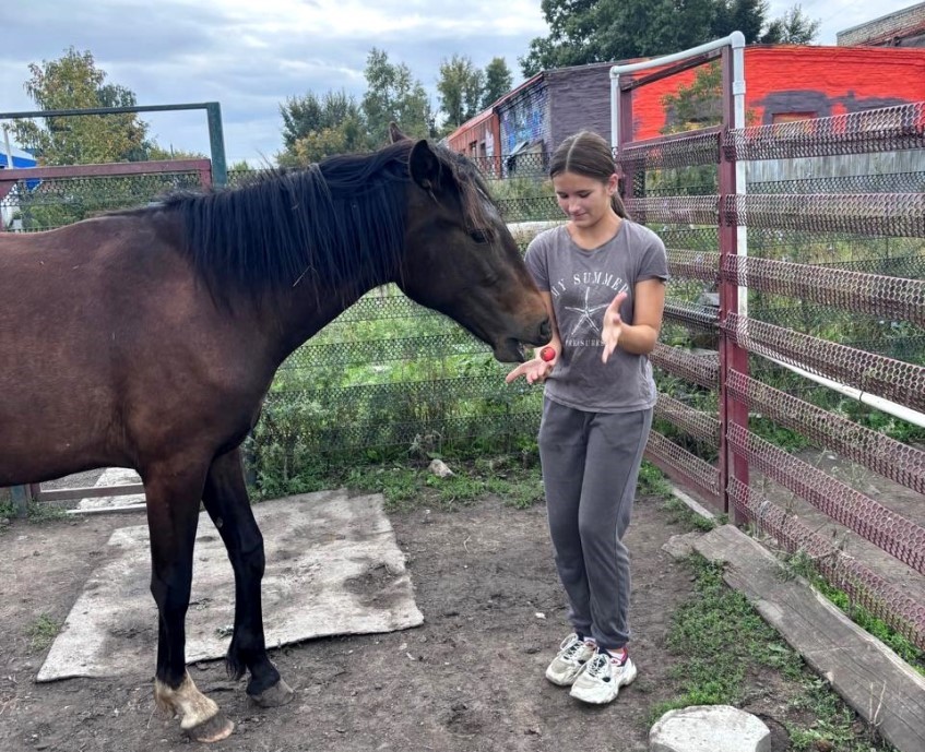 Они привезли корм для животных, яблоки для лошадей, полезные вещи для приюта, в том числе переданные от неравнодушных граждан.