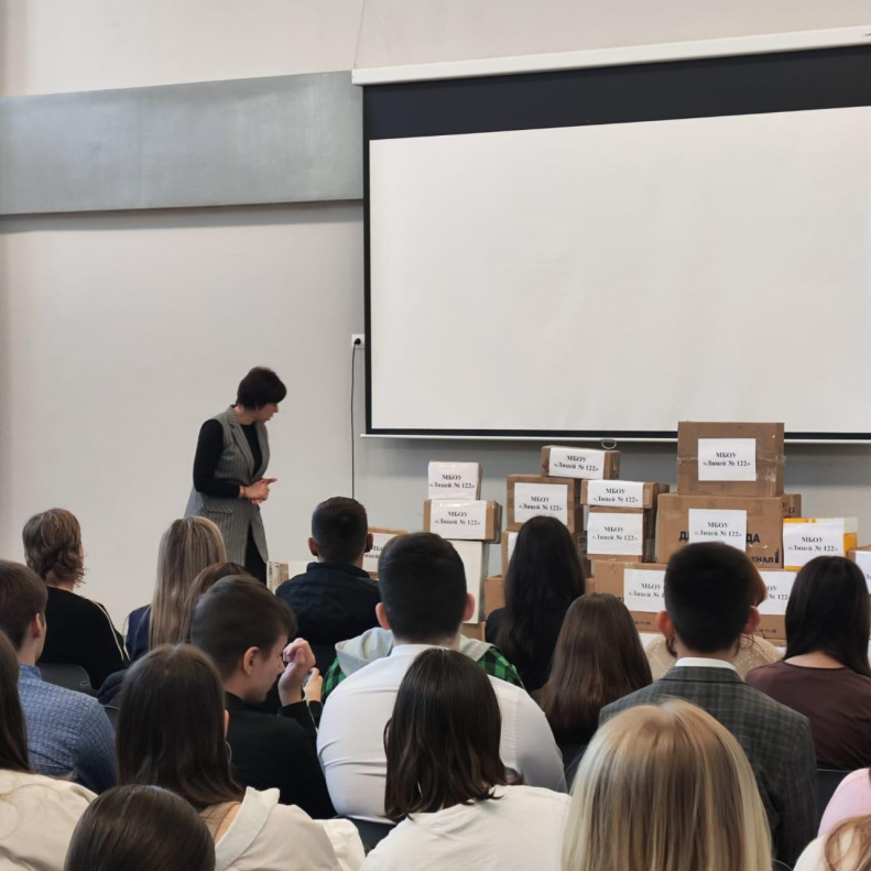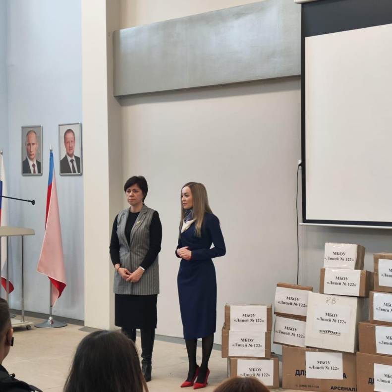 В лицее №122 состоялась передача гуманитарной помощи участникам специальной военной операции