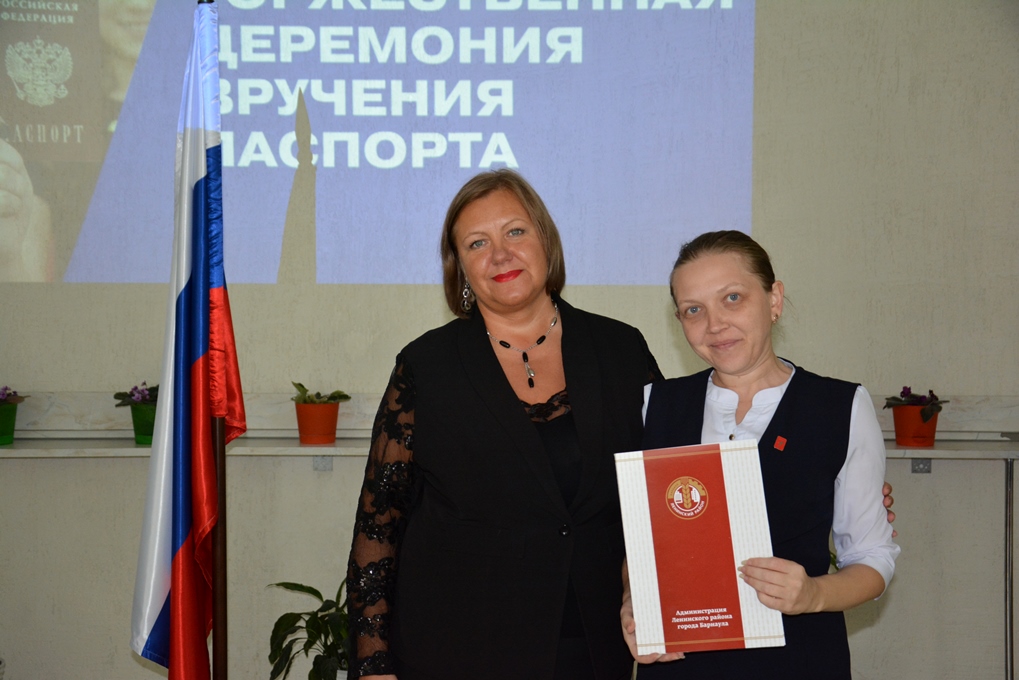 Сегодня в торжественной обстановке паспорта гражданина России 14-летним школьникам вручили заместитель главы администрации Ленинского района, руководитель аппарата Наталья Челомбитко, заместитель председателя регионального отделения Общероссийского общегосударственного движения детей и молодежи «Движение Первых» Алтайского края Александр Коробков и депутат Барнаульской городской Думы Дмитрий Абалымов.