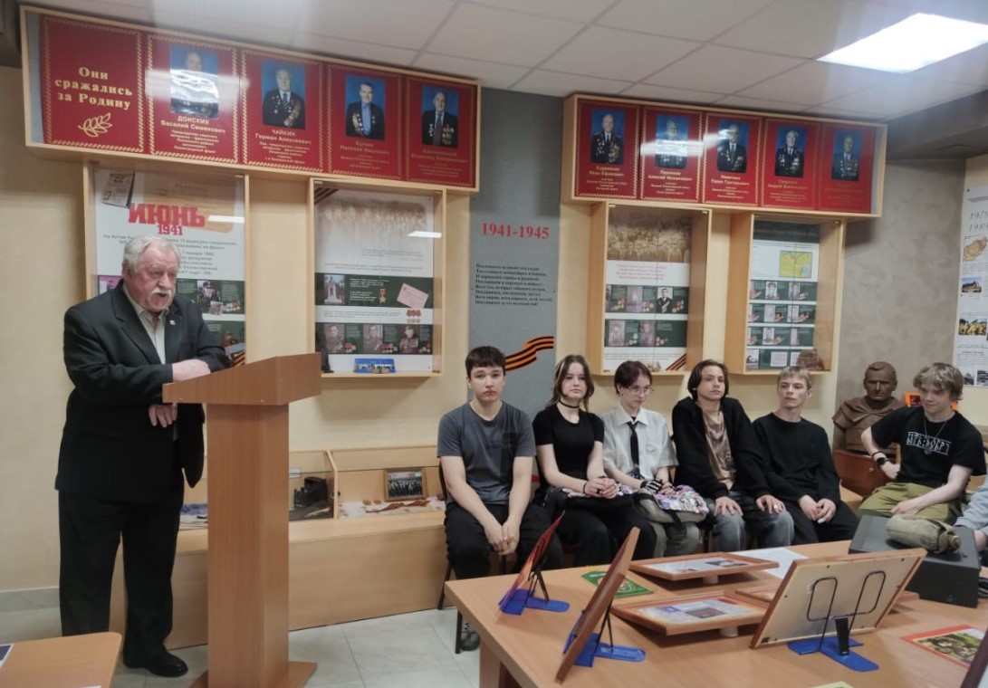 В беседе с посетителями музея по данной теме принял участие член Союза писателей России, прозаик, краевед и публицист Сергей Краснов, лично знавший Михаила Тимофеевича. Сергей Васильевич ответил на многочисленные вопросы, связанные с историей создания самого массового в мире стрелкового оружия. Он подчеркнул: «Конструктор Михаил Калашников создал не оружие войны, а оружия для защиты нашей Родины». Кроме того, писатель рассказал о своем творческом пути и презентовал свою книгу «На пьедесталах Алтая».