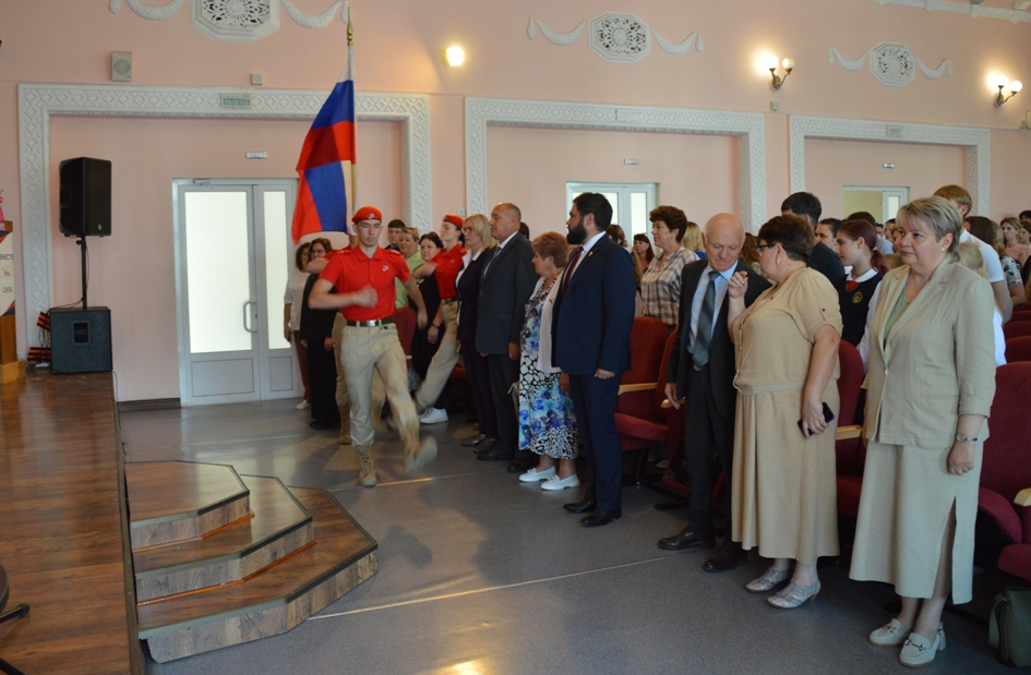 В начале мероприятия государственный флаг Российской Федерации внесли курсанты военно-патриотического клуба «ВОИН» Алтайского архитектурно-строительного колледжа.
