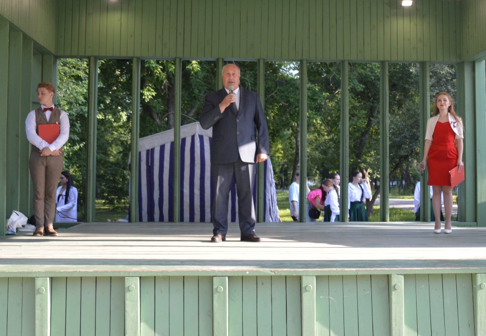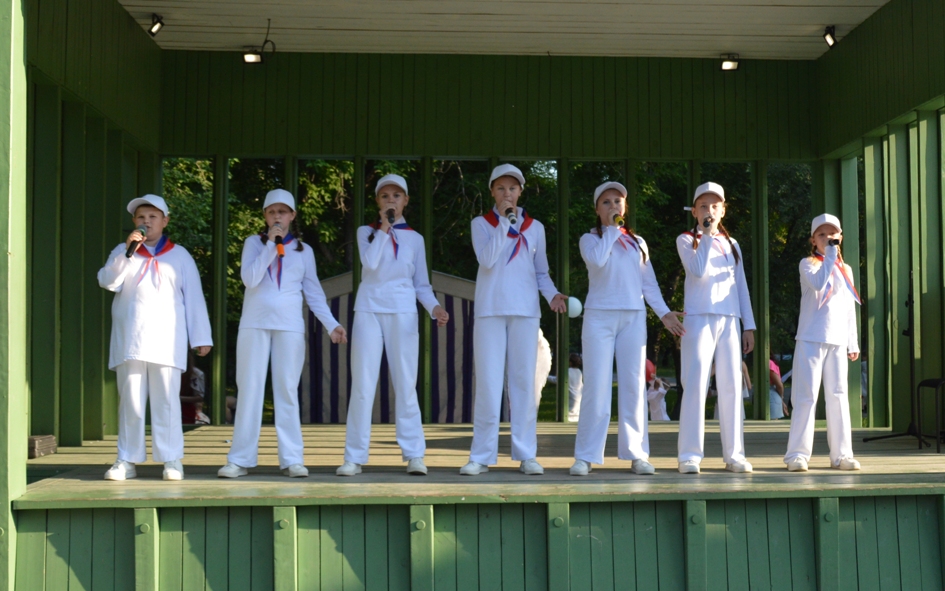На сценке парка у центрального входа также прошел праздничный концерт, организованный администрацией Октябрьского района.
