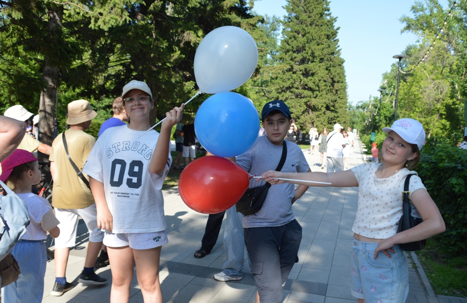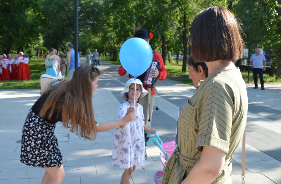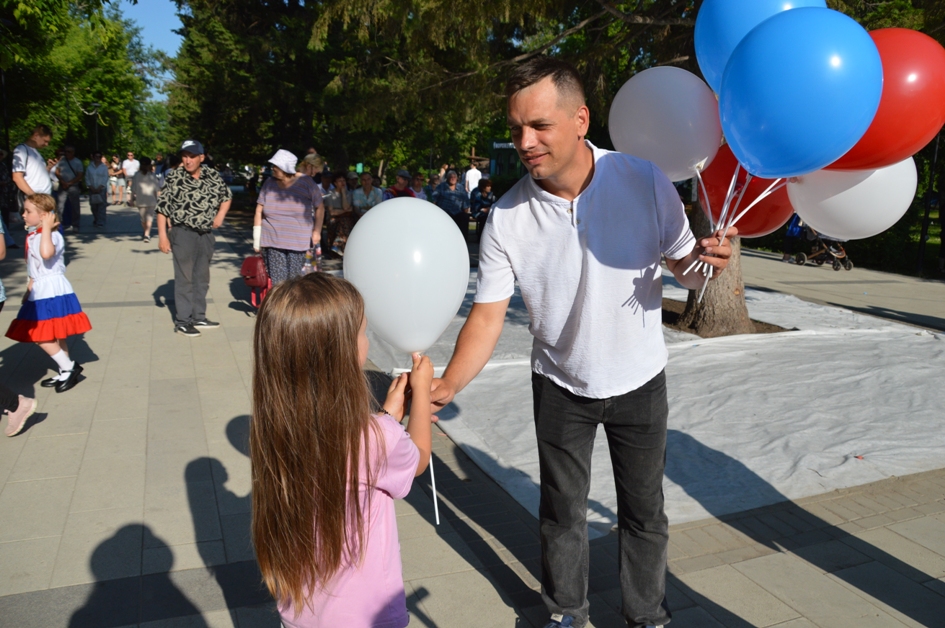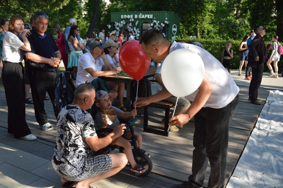 В течение праздника гостям парка раздавали ленты и воздушные шары триколор.