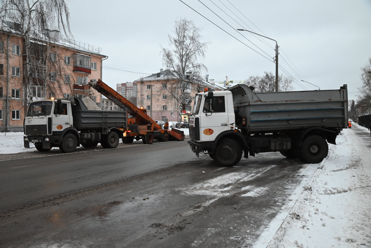 Вывоз снега в ночь проходил на: пр. Ленина, пл. Советов, Павловском тракте, пр. Социалистическом, пр. Строителей. Было задействовано 89 единиц техники. В дневную смену работает порядка 70 единиц.