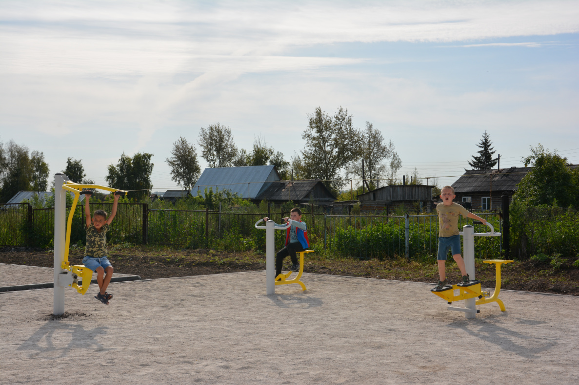 Юные жители села Гоньба получили в подарок современную детскую площадку