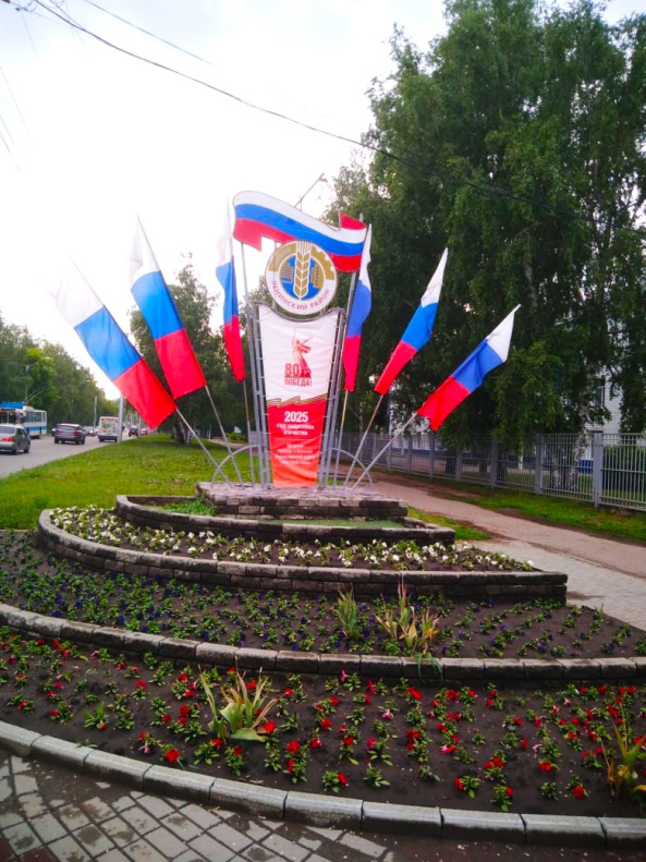 Также «триколоры» украсили прилегающие территории предприятий промышленности и торговые центры района.