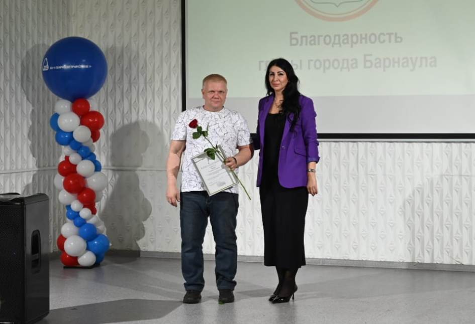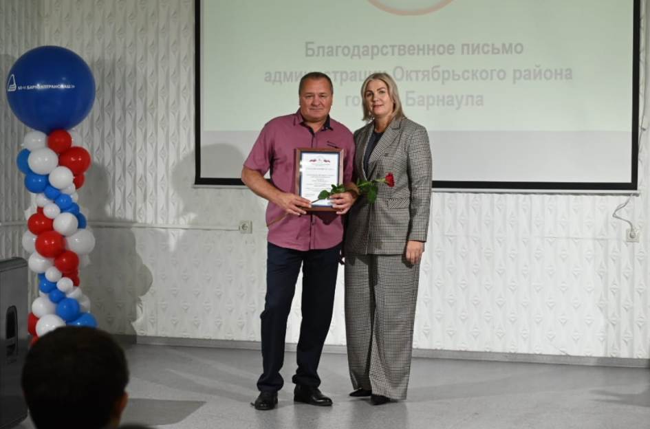 Заместитель главы администрации Октябрьского района города Барнаула по социальным вопросам Галина Бровко поздравила работников Барнаултрансмаша, поблагодарила их за труд, пожелала дальнейшего развития в отрасли.