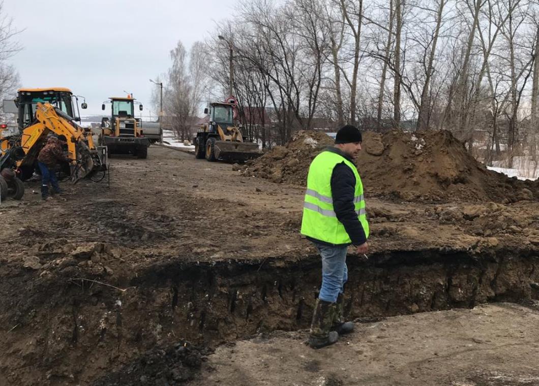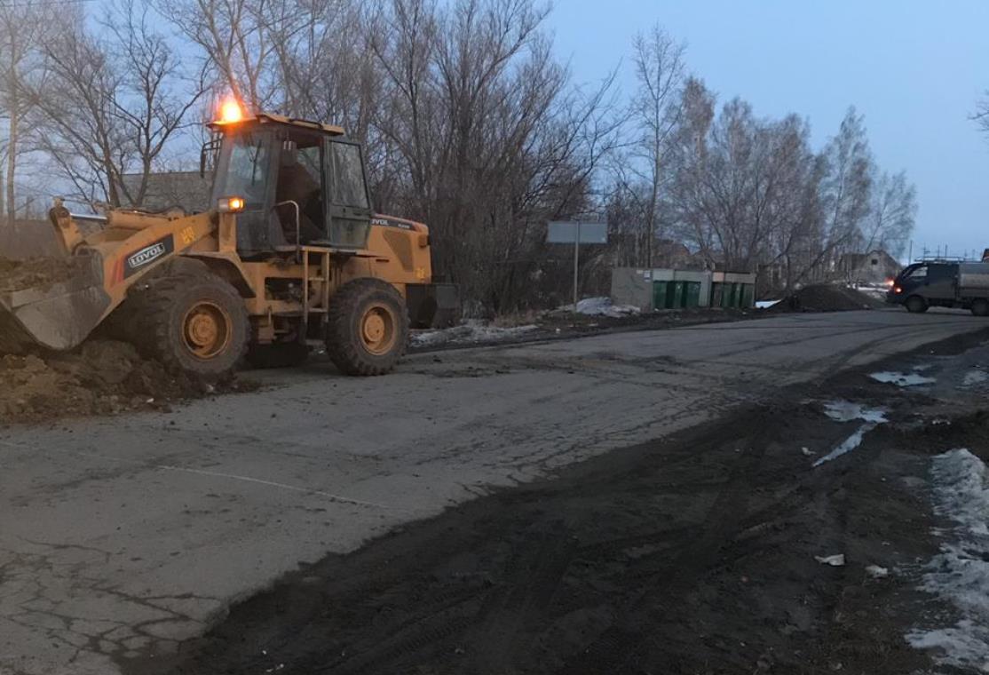Работы на этом участке проводятся в рамках плана предупредительных мероприятий по снижению негативных последствий пропуска талых и паводковых вод подрядной организацией ООО «Инженерстрой». Здесь демонтировали асфальтобетонное и щебеночное покрытие, ведутся работы по замене стальной водопропускной трубы диаметром 700 мм на две трубы диаметром 1000 мм.