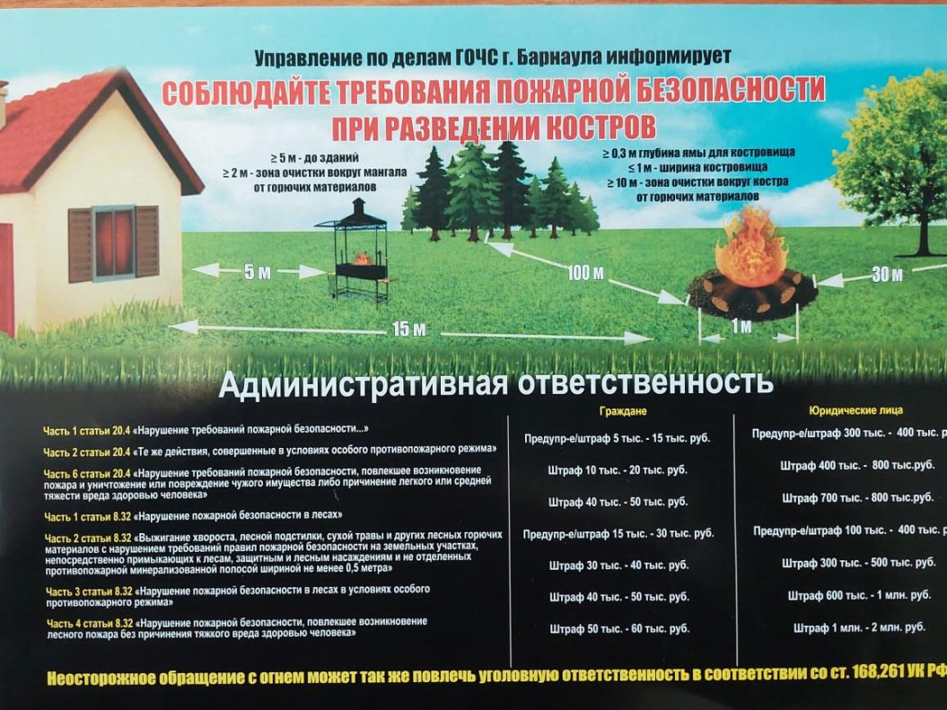 В ходе рейда они беседовали с барнаульцами о соблюдении требований пожарной безопасности в теплое время года. Речь шла о правилах сжигания мусора, разведения костров, запрете выжигания сухой травы и соблюдении пожарной безопасности на дачных участках и в домах.