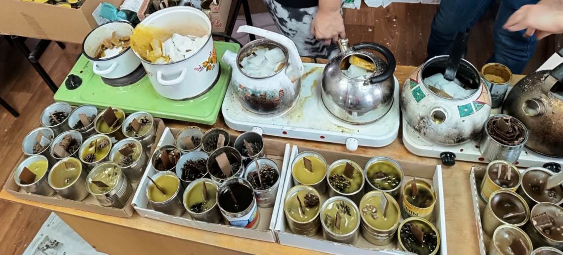 Блиндажные свечи служат для наших солдат источником тепла и света. Благодаря им можно разогреть еду, высушить обувь, согреть руки, растопить снег. В ходе акции было изготовлено более 200 свечей.