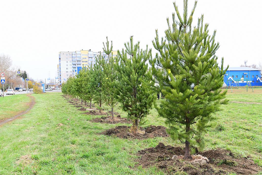 Сегодня два десятка молодых сосен высажено по улице Эмилии Алексеевой вдоль стадиона «Мотор».