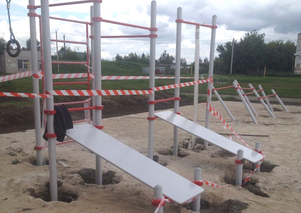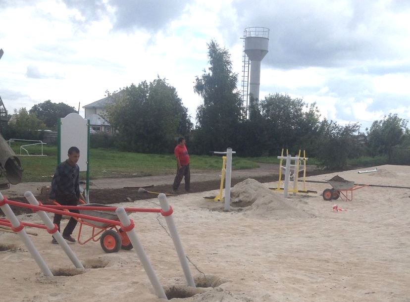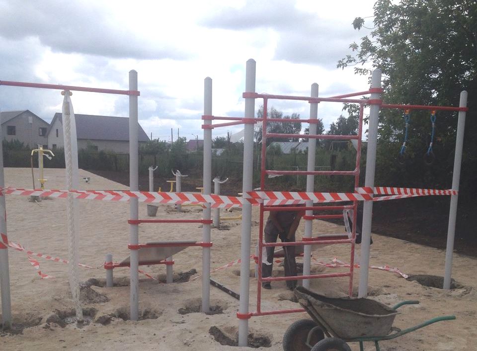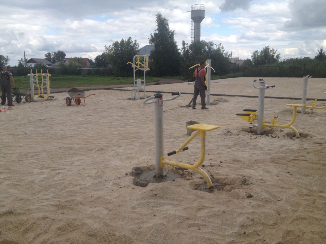 Перед этим были проведены подготовительные работы по планировке и выравниванию территории под площадку, устройству бордюрного камня, закреплению оборудования.