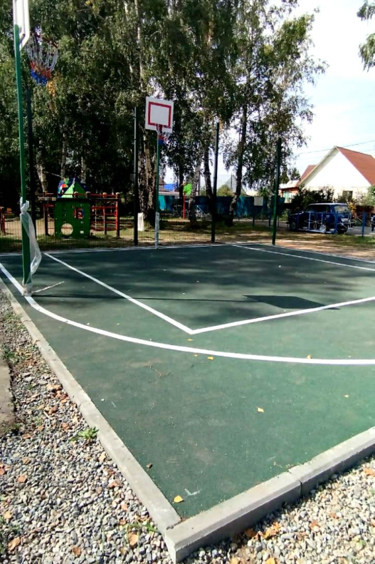 Инициативной группой организована работа по изготовлению и установке баскетбольных стоек с кольцами, вблизи смонтированы две уличные скамьи. Жителями проведены работы по нанесению разметки на покрытии путем нанесения краски для резинового покрытия.