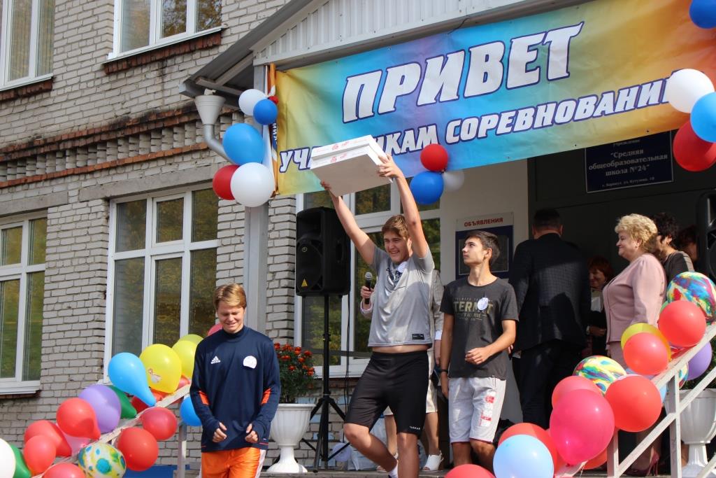 Ребятам, сдавшим нормы ГТО, вручили значки и паспорта участников; они и бойцы поискового отряда «Искра» получили подарки. В знак открытия площадки почетные гости перерезали красную ленту, забили победный гол и забросили мяч в баскетбольную корзину. На празднике выступили коллективы с танцевальными и музыкальными номерами, а после торжественной части на новой площадке начались соревнования между командами школьников.- Дорогие гости, ученики и учителя! Мне всегда приятно приходить в эту школу, потому что я сам долгое время приходил сюда заниматься спортом. Желаю вам всем достигать спортивных высот и не забывать, что спорт, в свою очередь, помогает достичь очень многого. Тренируйтесь, работайте, учитесь! Всего вам доброго!