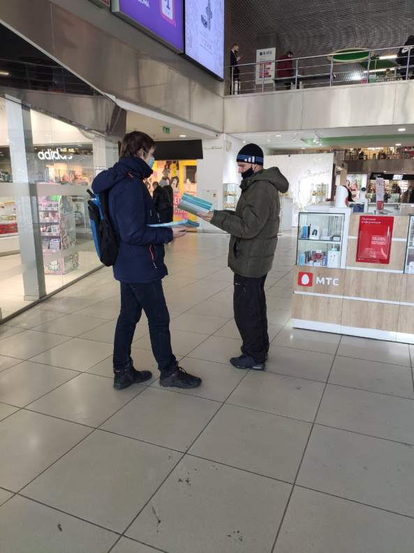 Посетителям торговых центров из числа студенческой и работающей молодежи раздают листовки с информацией о противодействии проявлениям терроризма и экстремизма, а вместе с ними памятки по профилактике наркомании,ВИЧ-инфекции, СПИДа.