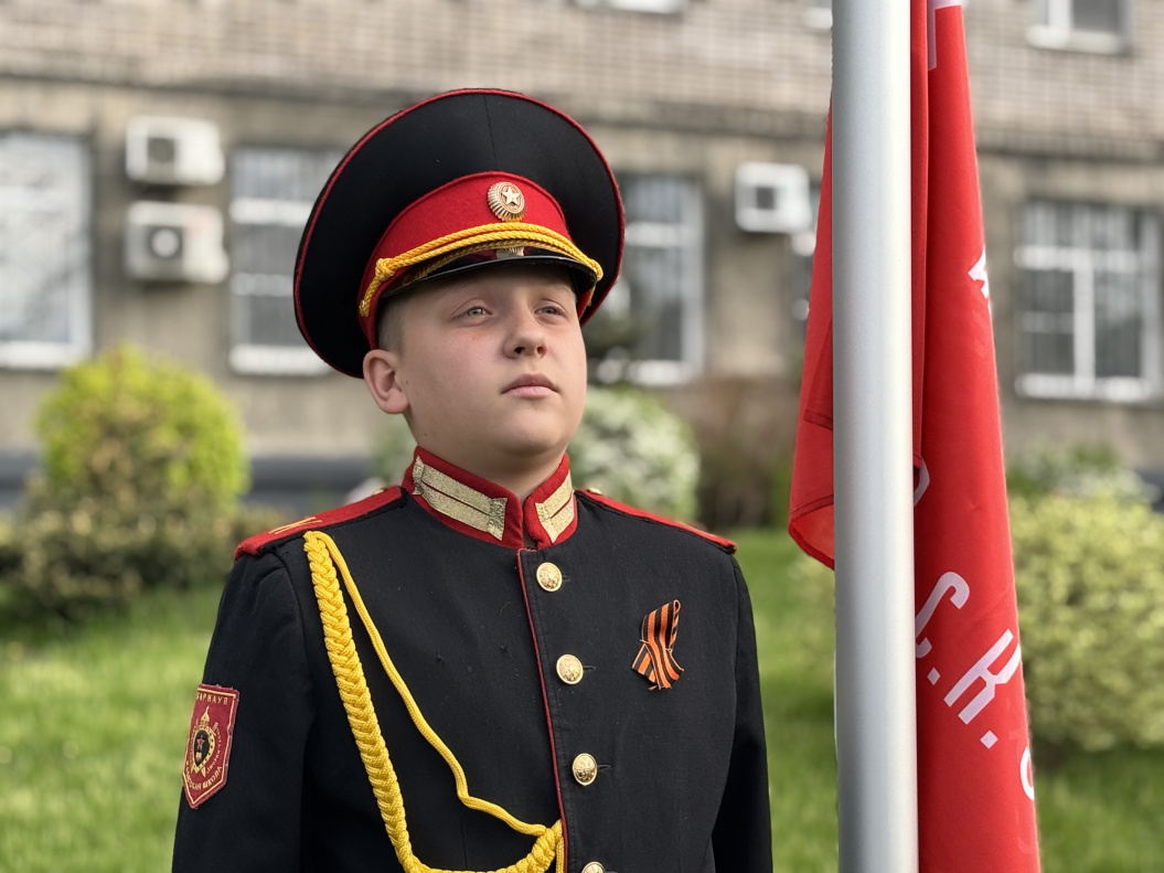 Почетное право поднять копию Знамени Победы было предоставлено воспитаннику Барнаульского кадетского корпуса, сыну погибшего участника СВО Егору Бахареву