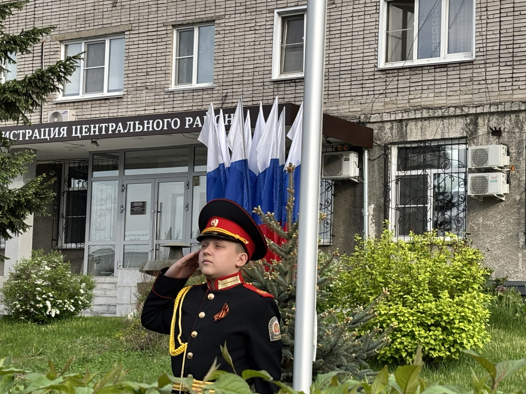 В Центральном районе состоялось торжественное поднятие копии Знамени Победы