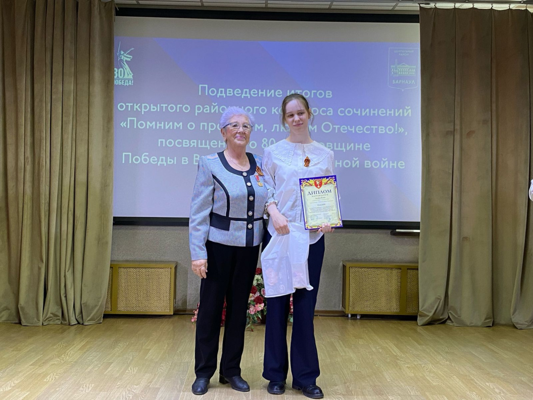 В Центральном районе города Барнаула подведены итоги районной викторины по истории Великой Отечественной войне и конкурса сочинений «Помним о прошлом, любим Отечество!»
