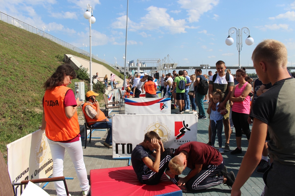 На празднике было представлено множество спортивных площадок: от фитнес-клуба «Шторм фитнес», от Национальной Федерации армреслинга, от оздоровительно-образовательного центра "Патриот", и другие. Гости фестиваля состязались в армрестлинге и мас-рестлинге, играли в шахматы, сдавали нормы ГТО, участвовали в «Веселых стартах». Для них прошли мастер-классы от фитнес-клуба «Рельеф» и студии йоги «Искусство жизни», показательные выступления по рукопашному бою, самообороне, ножевому бою. В автопоезде «Здоровье» все желающие могли бесплатно пройти медицинское обследование. Живая музыка от Екатерины Столбовой и Степана Карасева сделала праздник еще ярче. По итогам всех состязаний прошло награждение, где показавшие лучшие результаты получили памятные кубки и медали.