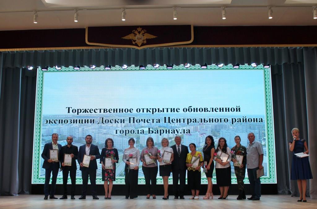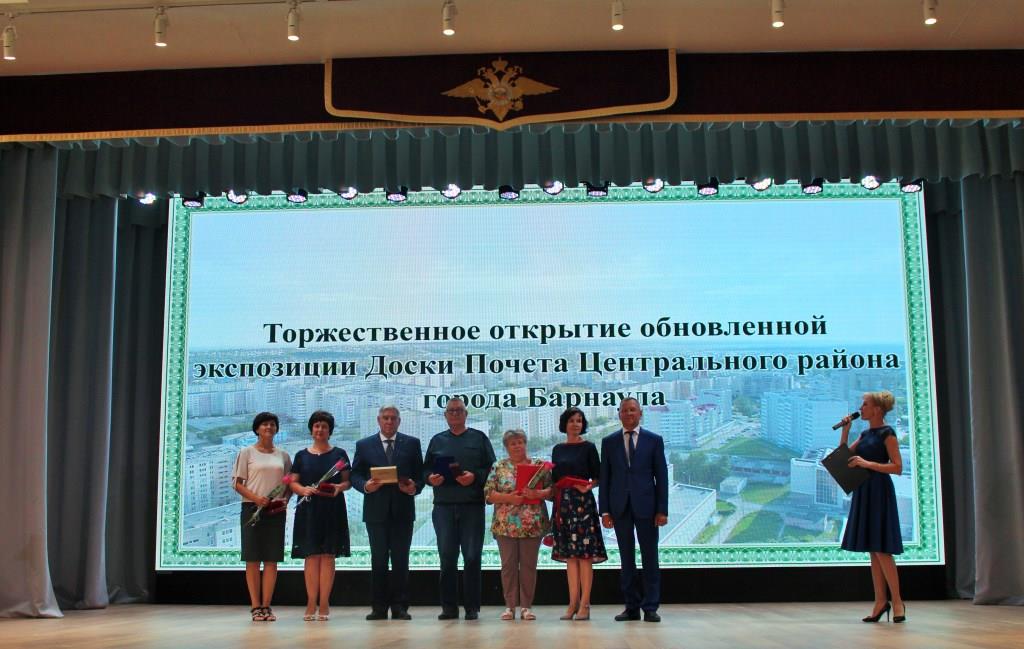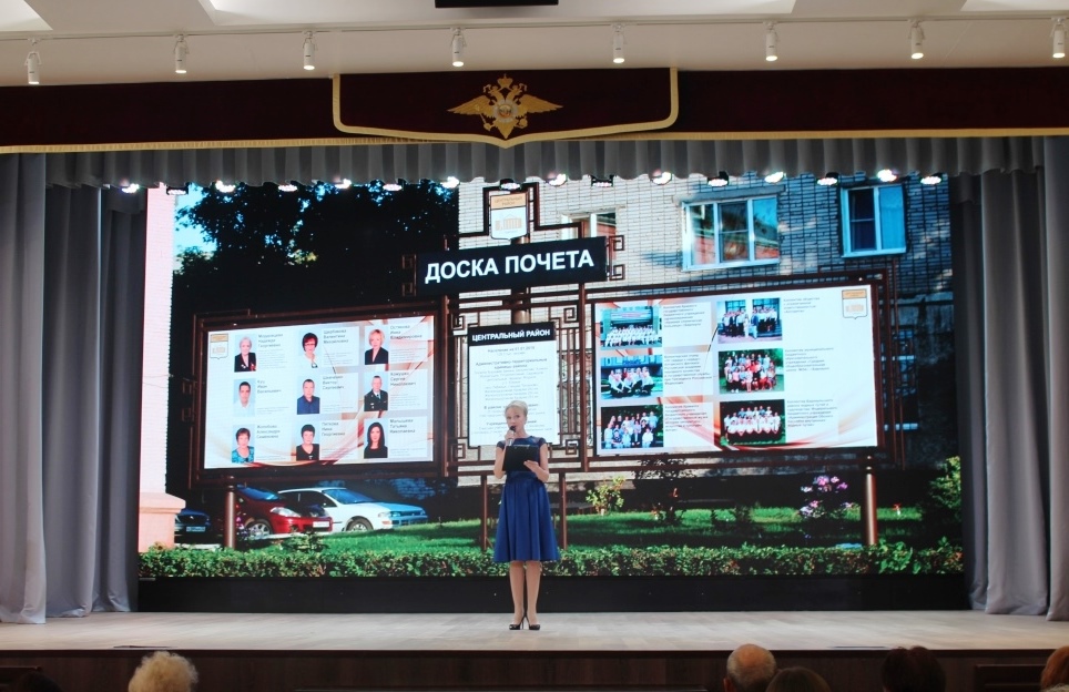 Сегодня в актовом зале БЮИ МВД России прошла торжественная церемония вручения краевых, городских и районных наград, посвященная новой экспозиции Доски Почета Центрального района. В зале собрались люди разных профессий: заслуженные учителя и медицинские работники, работники промышленности и торговли, творческих профессий и социальной сферы деятельности, представители общественности и власти.