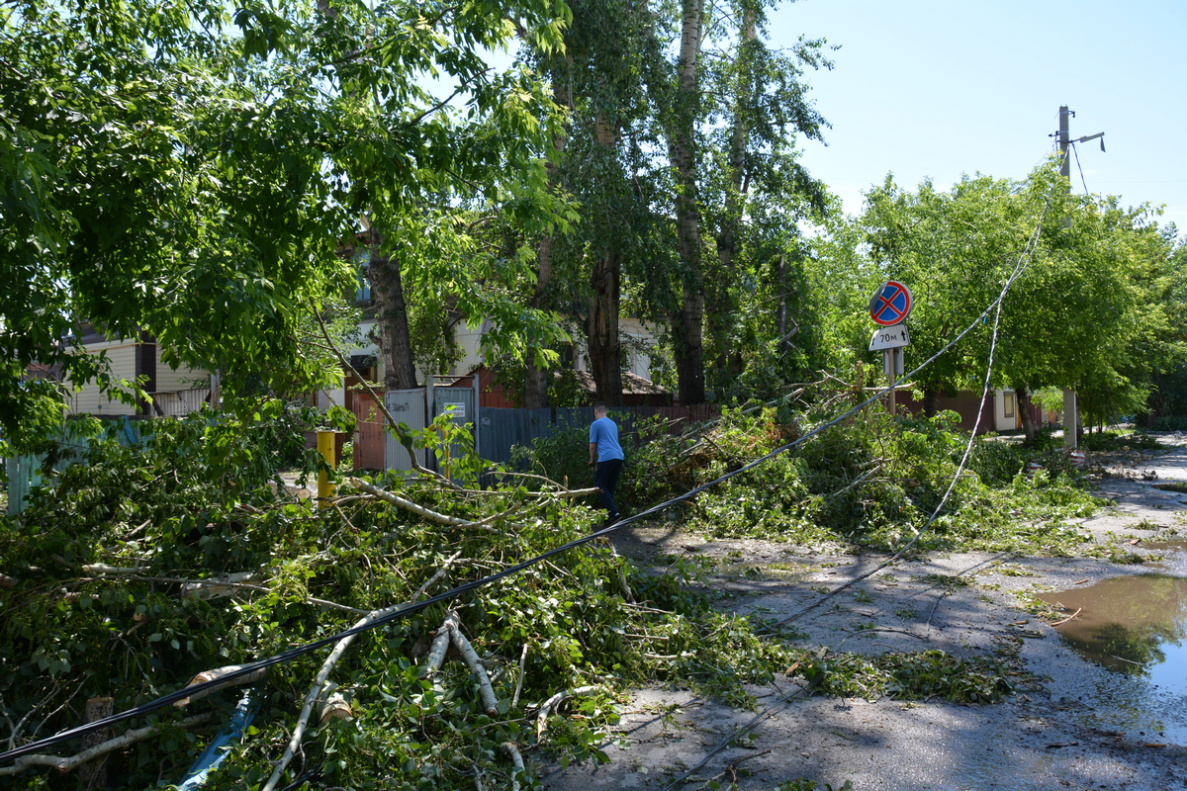 Аварийные службы продолжают очищать город от поваленных деревьев и веток, восстанавливать электроснабжение. Семь бригад Горэлектросети работают в микрорайонах ВРЗ, в нагорной и старой частях города.