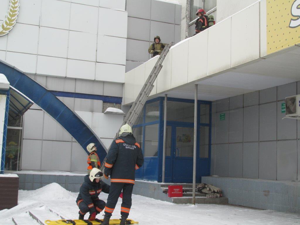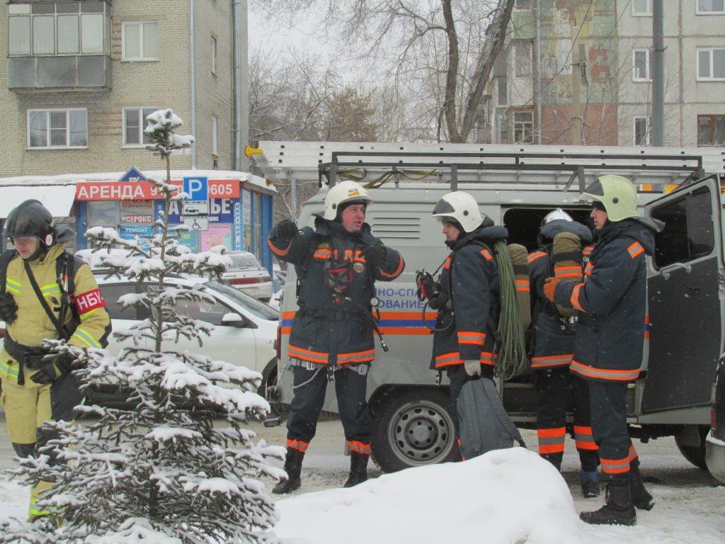 Дежурная смена городских спасателей после получения сигнала в установленное время прибыла к месту пожара и, получив задание, приняла участие в составе привлеченных сил в эвакуации людей находящихся в здании. Спасатели провели тренировку по подготовке к применению пожарного спасательного рукава для эвакуации людей с 9-го этажа с использованием альпинистского снаряжения.