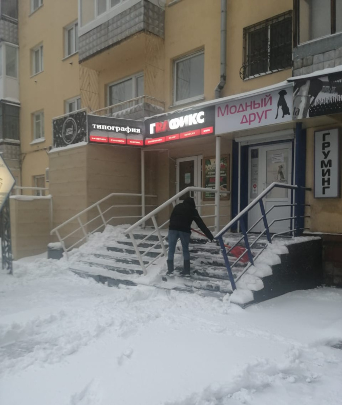 Организована работа более 180 предприятий потребительского рынка по очистке входных групп, прилегающих территорий от снега и посыпке противогололедными материалами прилегающих территорий, задействовано 122 дворника.
