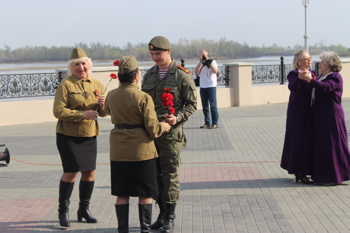 Народный ансамбль «Русская песня» представил вниманию гостей известные фронтовые песни. На протяжении всего концерта каждый желающий мог вальсировать под аккомпанемент оркестра.