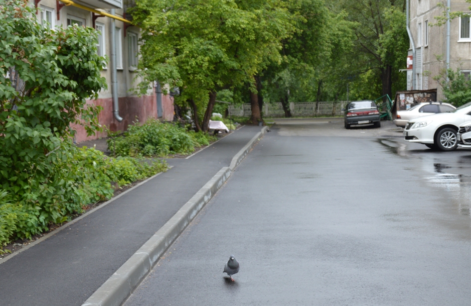 Во дворе дома по ул.Германа Титова, 46 работники подрядной организации уже заасфальтировали тротуары, парковку для автомобилей, площадку для мусорных контейнеров, а также дворовый проезд.
