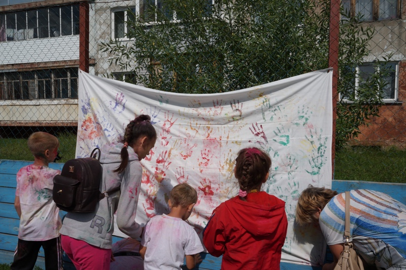 Помимо битвы красками на фестивале «Магия цвета» для участников выступили творческие коллективы школ №98 и 99, прошли конкурсы с раздачей сувениров и сладких призов, каждый желающий оставил свой след на полотне, символизирующем стену мира.