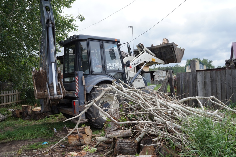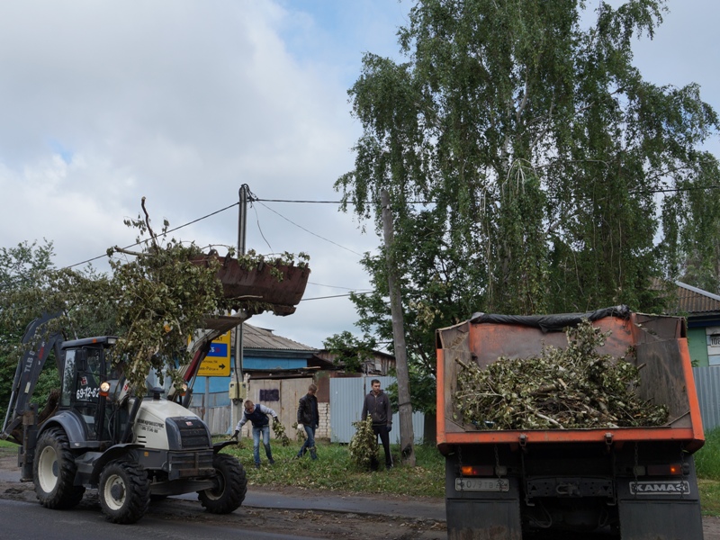 При помощи четырех единиц привлеченной техники с улицы Мамонтова вывезли ветки и деревья, поваленные после ураганного ветра. Участие в работах приняли 17 человек.