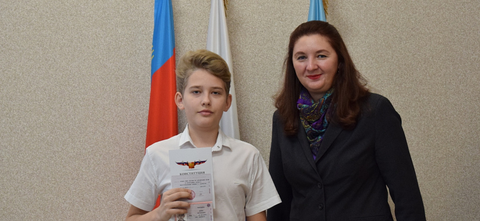 В Ленинском районе по доброй традиции в государственный праздник вручили паспорта школьникам, достигшим 14-летнего возраста. Со словами напутствия в новую взрослую жизнь к виновникам торжества обратились заместитель главы администрации Ленинского района Светлана Жиркова и начальник отдела по вопросам миграции районного отдела полиции Дмитрий Блинов. По окончании церемонии ребята сделали фото на память.