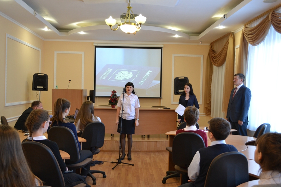 Для самых активных, спортивных и творческих школьников в Центральном районе прошла торжественная церемония вручения первого паспорта. С этим знаменательным днем юных граждан поздравили глава районной администрации Максим Сабына и депутат Алтайского краевого Законодательного Собрания Альберт Лунев совместно с отделом полиции по Центральному району. Ребят познакомили с историей возникновения паспорта, рассказали, какие права и обязанности они приобретают с 14-летнего возраста. Каждый из 15 школьников получил сегодня свой первый документ гражданина РФ и Конституцию - основной закон России. Музыкальный подарок для собравшихся подготовил вокальный коллектив «Виват» Барнаульского юридического института».