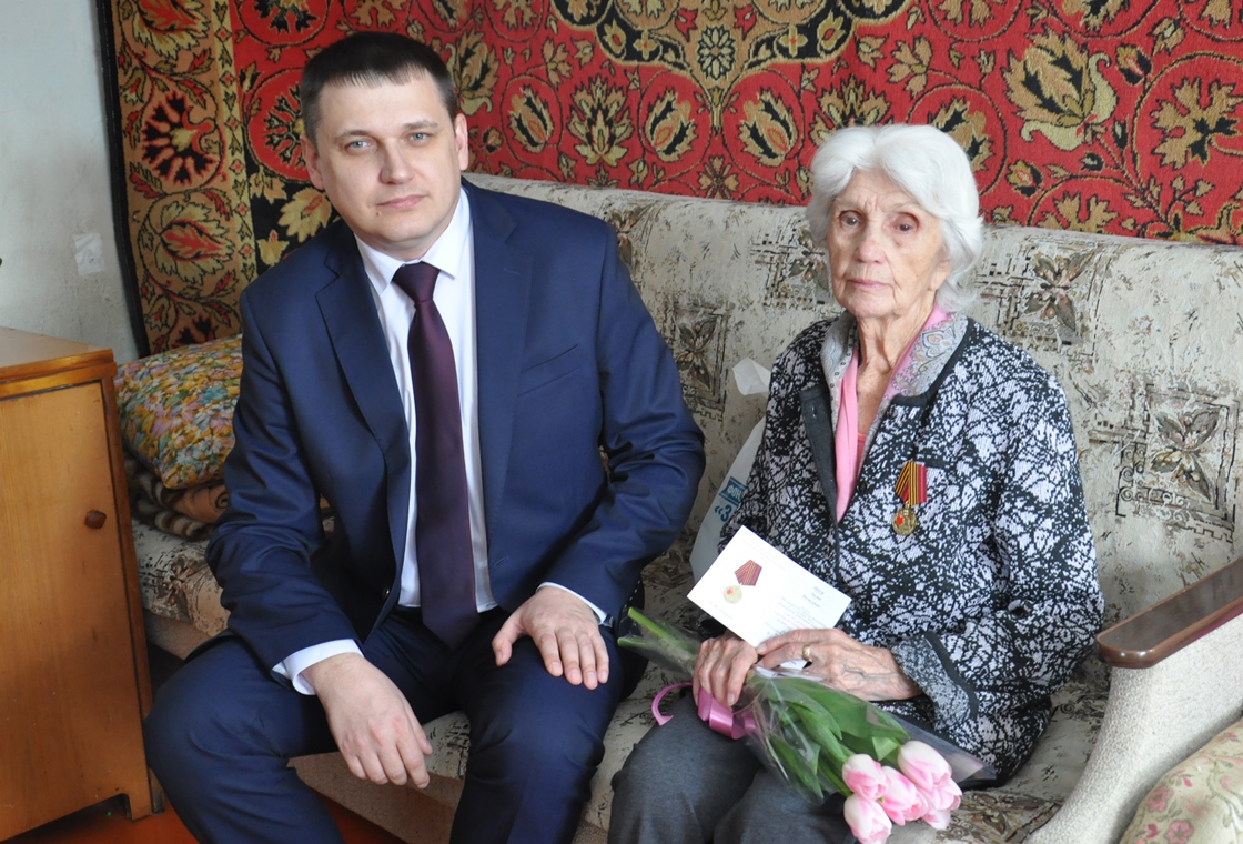 В преддверии праздника 8 Марта поздравить ветерана с Международным женским днем и вручить юбилейную медаль «80 лет Победы в Великой Отечественной войне 1941—1945 гг.», а также передать подарок от от фонда Героя России В.А. Шаманова «Защитники Отечества» пришел глава администрации Ленинского района Евгений Авраменко.