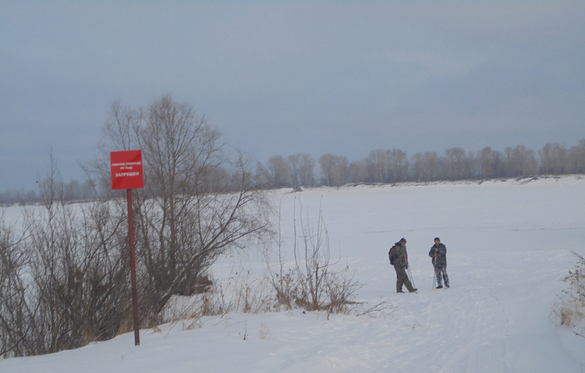 В соответствии с требованиями «Правил охраны жизни людей на водных объектах Алтайского края» произведена установка знаков «Переход (переезд) по льду запрещен».